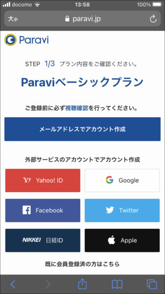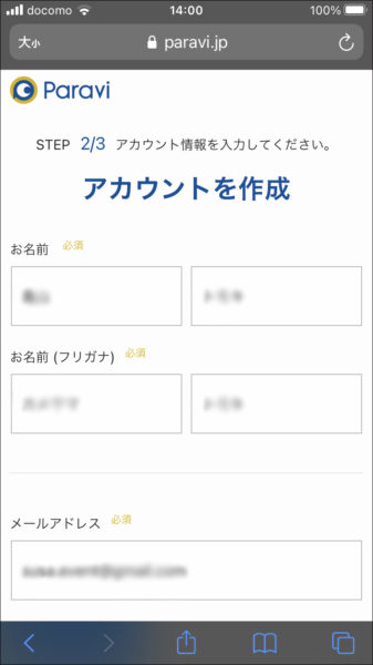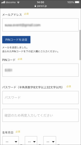 今回はメールアドレスを入力して登録した例をご紹介します。