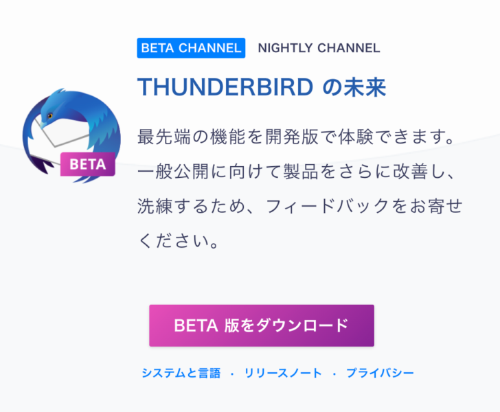 ですが、「Thunderbird」の公式サイトみると、「BETA版」が公開されています。